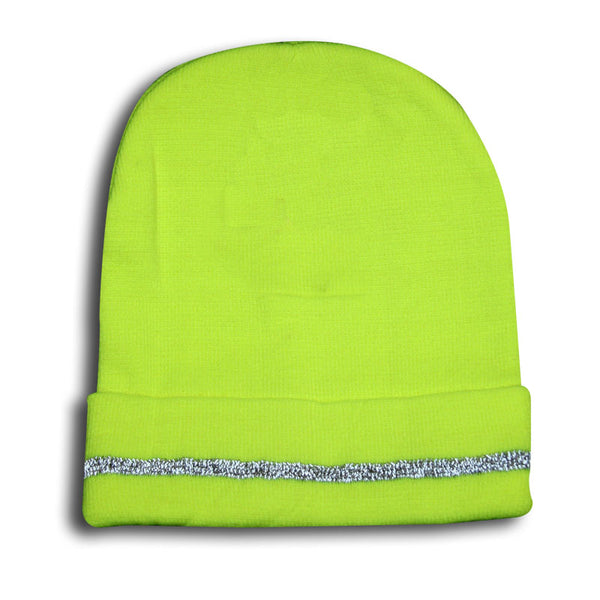 Keep your head warm and visible with our high-viz knit beanie hat. This beanie is sure to keep you safe and comfortable in any environment this winter. Our beanie is also one-size-fits-most and made of 100 percent polyester knit material with reflective thread for enhanced visibility. This reflective winter hat also keeps you warm while doing any night activities like outdoor sports, running at night, or while working on the jobsite. The beanie has greater flexibility than others because of its sewn-on reflective tape that doesn’t restrict your movement while outside. Invest in yourself and your safety with our high-viz knit beanie hat today!