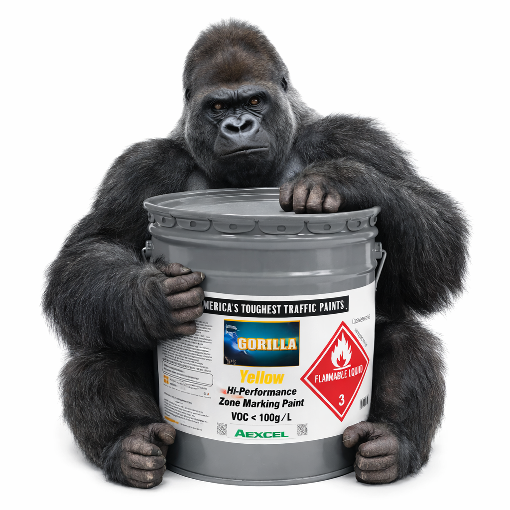 Aexcel Gorilla Paint is our toughest solvent-borne acrylic zone marking paint, engineered for maximum durability and long-lasting performance. Designed for high-traffic environments, Gorilla Paint delivers superior adhesion, faster dry times, and a cleaner finish compared to ordinary fast-dry traffic paints.